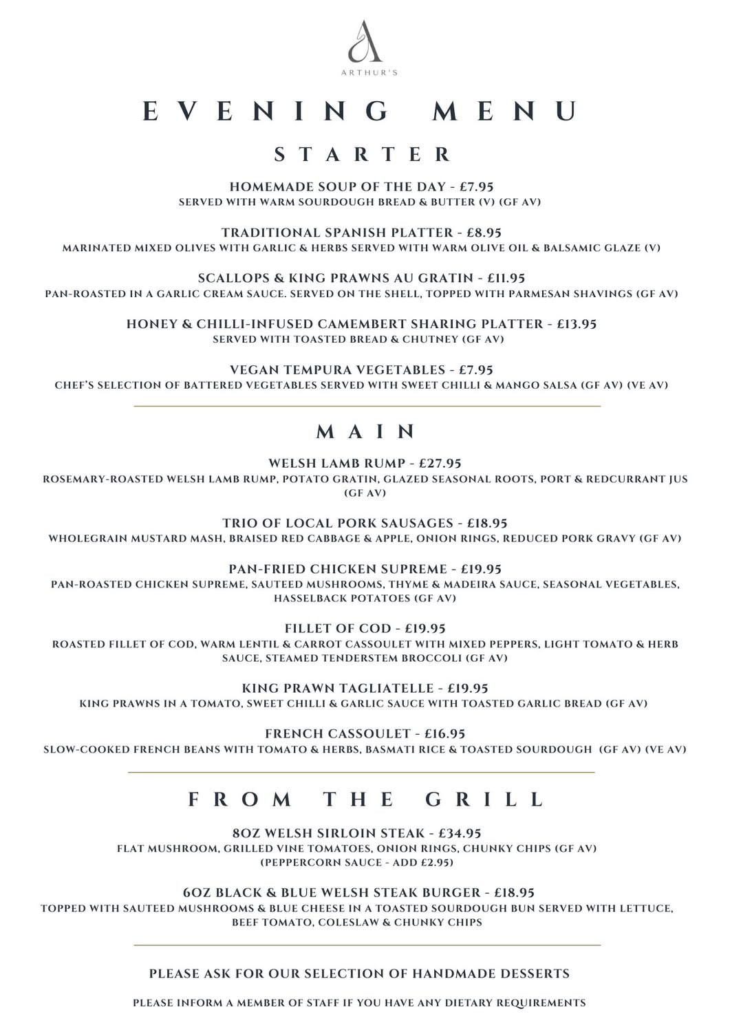 and Evening Menu served from 6pm-8.30pm