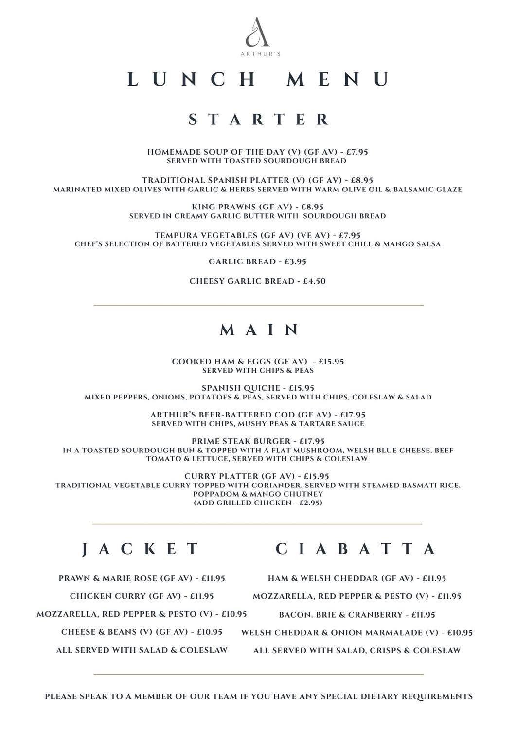with Lunch Menu served from 12.00-2.30pm