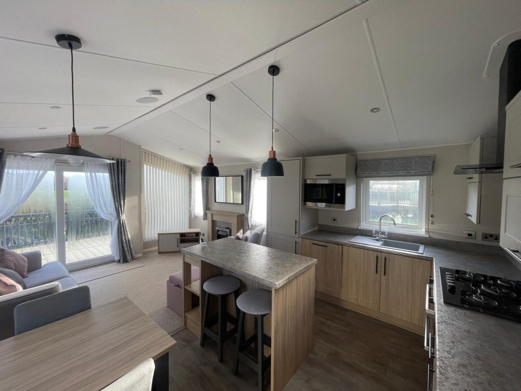 One owner from when bought new in 2022, this lodge is stunning, with a larger outdoor patio area in addition to its decking extension